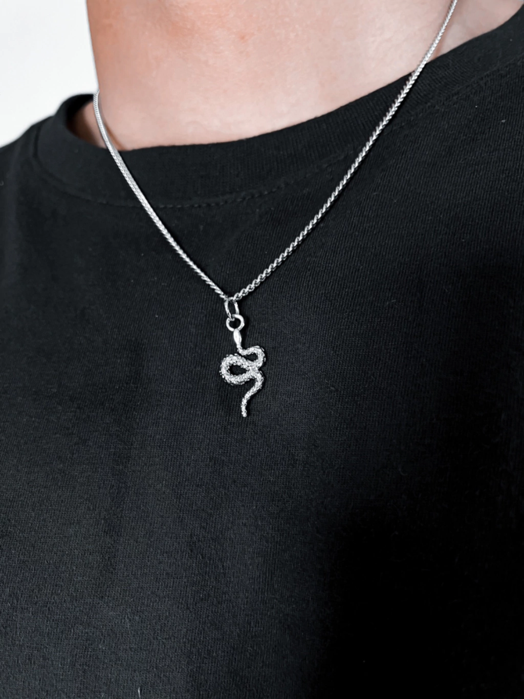 O nosso Colar Snake é um acessório incrível para fazer parte do seu look, ele possui uma pegada street e moderna com a cor prata em sua corrente e também contando com um pinjente de cobra trazendo para seu look um acessório versátil e de facil combinação.